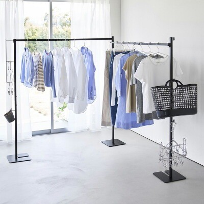 さらに、支柱の両端には複数のフックが付いており、ハンガーや洗濯かごなどをまとめるのに便利。2連タイプのほかに1連タイプも用意しています。ショッピングサイトでは、2連タイプが1万5000円前後で販売中です。