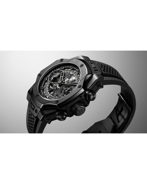 新作では、サテン&ポリッシュ仕上げを施したブラックセラミック製の42mmケースを採用したほか、「ビッグ・バン」シリーズの特徴である大胆なジオメトリーとモジュラー構造を反映。スケルトンダイヤルを取り入れることで、フライバッククロノグラフやシリコン製脱進機、約72時間パワーリザーブを備えたHUB1280キャリバーの構造を見ることができる。世界で200本限定で販売し、価格は402万6000円。