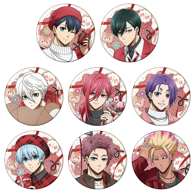 エゴイストたち等身イラストの「アクリルスタンド」「クリアファイル」「ビッググリッター缶バッジ」のほか、キューピッドに扮したデフォルメキャライラストの「ばね口ポーチ」「キャンディキーホルダー」もラインナップ。さまざまなアイテムがバレンタイン仕様になっている。