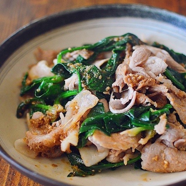 ほうれん草というと、おひたし、ソテーなど副菜のイメージが強いけれど、豚肉と合わせ、濃いめの味付けにすることで、立派なメインディッシュに早変わり!