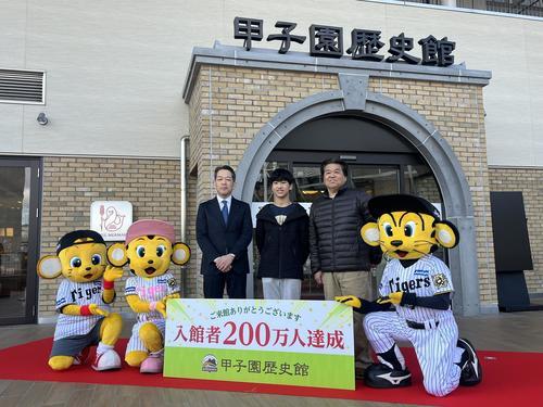 甲子園歴史館は25日、入館者が200万人に達成し、記念のセレモニーを行った。