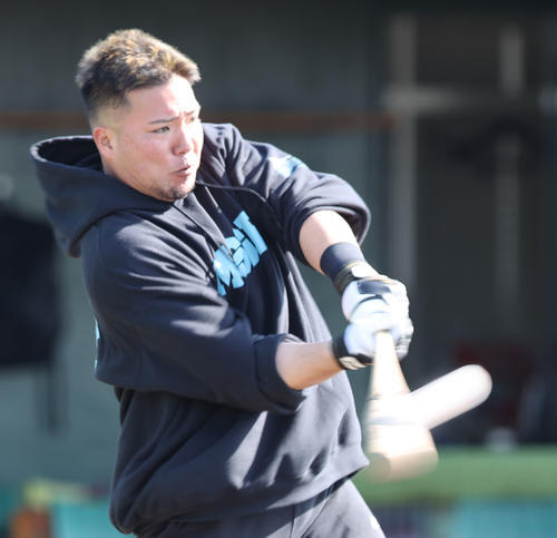 日本シリーズ終了後の体重114キロが、この日の朝105キロまで落とした。報道陣にはドーナツを差し入れしたが、自身は食事制限のため我慢。「今、一番食べたいのがドーナツ!」と、笑い飛ばし「体の動きが非常に力強いのに体が軽い」と、今のボディがすっかりお気に入り。「みんなを驚かせるような、自分自身が驚くような数字を出したい」と、今季の活躍を誓った。