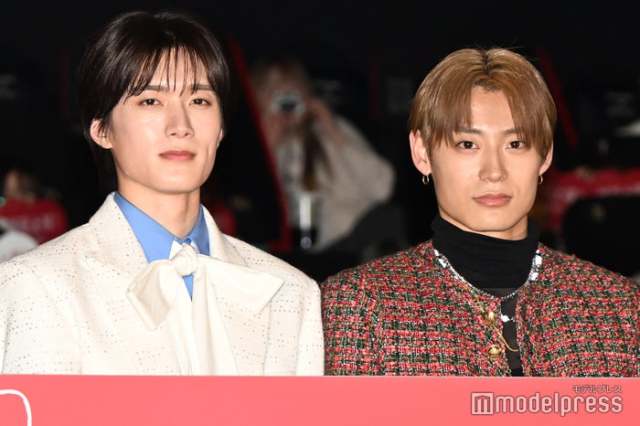 山中柔太朗、高松アロハ(C)モデルプレス【モデルプレス=2026/01/26】M!LKの山中柔太朗と超特急の高松アロハ(※「高」は正式には「はしごだか」)が1月26日、W主演を務める映画「純愛上等!」(2月13日公開)の完成披露上映会に出席。バレンタインにちなんだ“愛の言葉対決”を行い、会場を沸かせた。