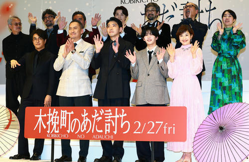 黒幕の芝居小屋の座付き作家、篠田金治役の渡辺謙(66)は「久々に痛快娯楽時代劇が帰って来た。時代劇って、どうしても切った、張ったっていうものを想像されると思うんですが、帰るときに爽快感を持って出られる。ちょっと心温まりながらスッキリして映画館を出られる。そういう作品、時代劇になっています」。