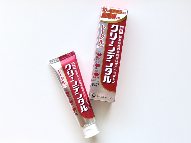 また、それぞれパッケージの色が異なるのも特徴です。今回は「クリーンデンタル」内で売り上げNo.1という赤色の “トータルケア” を購入しました。私がSNSでよく目にしていたのも、この赤が目印の1本です。