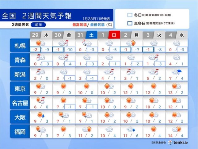 29日〜2月4日の天気 29〜30日は再び大雪のおそれ