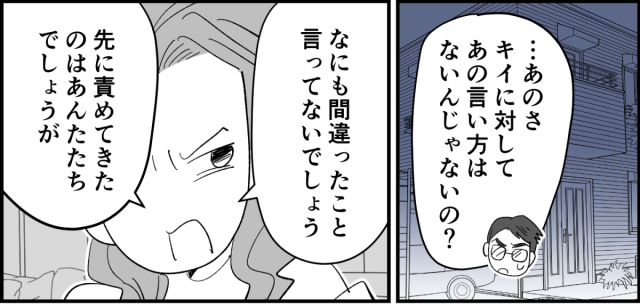 「……あのさ、キイに対してあの言い方はないんじゃないの? キイはなにも間違ったことを言っていないでしょう。あんなに冷たい断り方して、相手が怒って逆上してきたらどうするの?」旦那がさっきのセールスの人に対する私の対応について、また責めてきました。