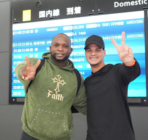 中日の新助っ人コンビ、ミゲル・サノー内野手(32=元エンゼルス)とアルベルト・アブレウ投手(30=元西武)が28日、来日した。