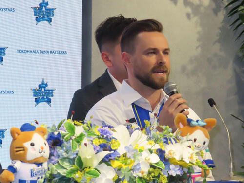 日本とは深い縁がある。DeNAの新外国人4選手が28日、横浜市内の球団事務所で入団会見に臨んだ。クーパー・ヒュンメル外野手(31=レイズ傘下3A)は「みなさん、こんにちは。お会いできてとてもうれしいです。よろしくお願いします」と、流ちょうな日本語であいさつ。2002年〜04年まで、父親の仕事の関係で日本に住んでいたことを明かした。