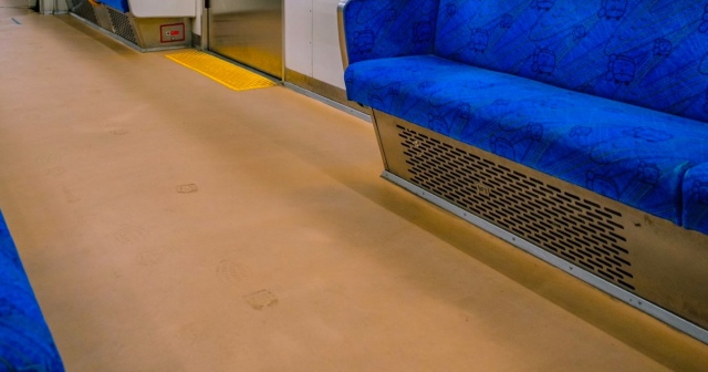 写真は夜と朝の境目が感じられる幻想的な1枚となっており、車窓には青とオレンジが溶けあう空が広がっています。写真には他の乗客は写っておらず、忙しない1日がスタートする前の静けさを独り占めできそうです。ぼーっと眺めていたい……!