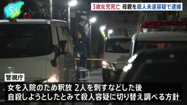 東京・武蔵野市の住宅で、3歳の女の子を刺し殺害しようとしたとして、母親が逮捕されました。女の子はその後、死亡しました。