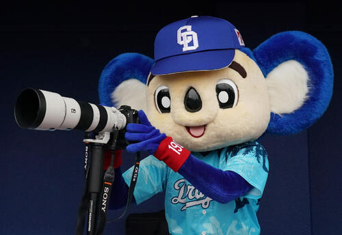 ドアラが激写! 中日の春季北谷キャンプは2日目を迎え、球団の人気マスコットが懸命に練習へ取り組む選手たちの姿を伝えようと、ファインダー越しに狙いを定めた。