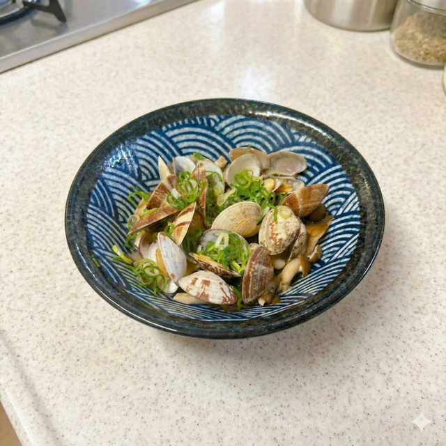 旦那さんに好評だったレシピを伺うと、白だしで作るあさりの酒蒸しとのこと。砂抜きいらずの冷凍あさりを使い、レンジ調理で完成させる一品で、簡単なのにおいしく仕上がる工夫が凝らされています。
