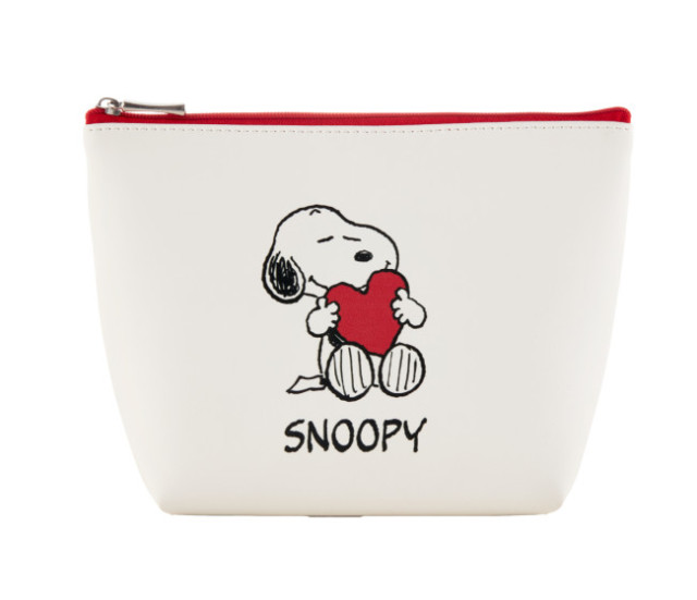 デザインは全2種類から選ぶことが可能。例えば、ハートを抱えたスヌーピーをあしらったポーチと、ハグするウッドストックとスヌーピーを描いたミラーの組み合わせがそろう。