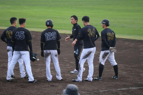 阪神育成ドラフト2位の山崎照英外野手(23=関西L兵庫)が目標の赤星憲広氏(49)に初対面を果たし、宣言通りに質問攻めした。同氏が具志川キャンプに臨時コーチとして訪問。ベースランニングや盗塁練習でみっちりと教わった。「体の使い方やベースの踏む位置、僕が今まで考えてないところばかり教えてもらった」と感激した。