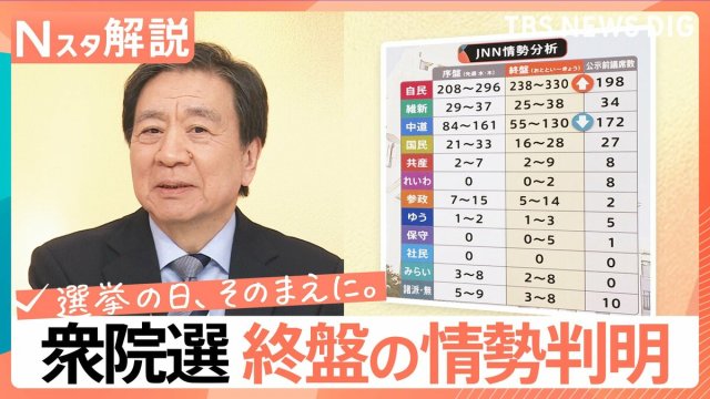 今月8日に投開票が行われる衆議院議員選挙について、JNNが終盤の情勢を分析した結果、自民党が序盤情勢からさらに伸ばし、単独過半数を大幅に上回る勢いであることがわかりました。