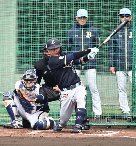 オリックス若月健矢捕手(30)が5日、初招集のWBC合宿へバットでもアピールした。この日は早出特打から、若手にまじってライブBP、個別でも特打に挑戦。若手投手と対戦したライブBPでは20球対戦して2安打を放った。