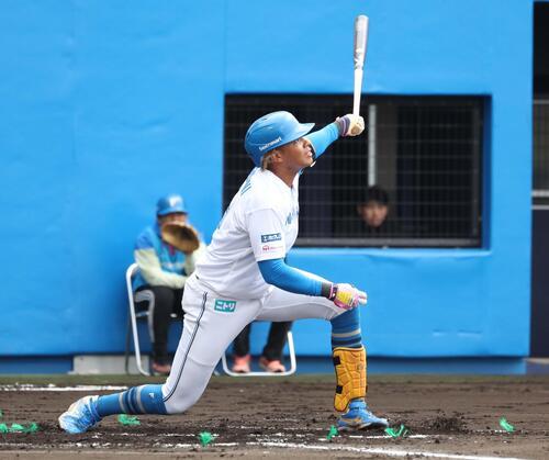 白組の1番左翼でスタメン出場。1回裏の第1打席で、紅組先発のWBC台湾代表右腕の孫易磊投手(20)と対戦。150キロ直球で追い込まれたが、最後は136キロ変化球を泳ぎながら捉えた。フラッと上がった打球だったが、左翼方向への強い風に乗って、そのままスタンドイン。左越え先頭打者アーチとなり、これがチーム1号。まだ他球団は実戦を行っておらず、一番乗りアーチとなった。