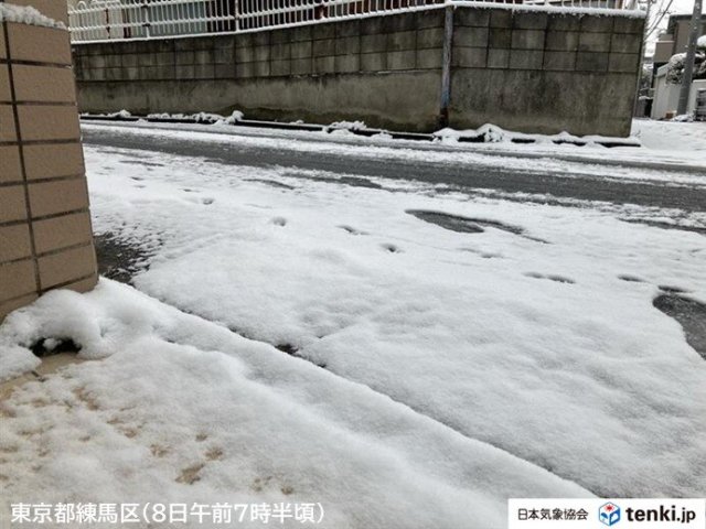 今日8日の関東地方は昼過ぎにかけて南部を中心に雪が降り続き、平野部を含めた広い範囲で雪が積もるでしょう。東京23区では歩道だけでなく車道にも雪の積もっている所があります。車の運転はノーマルタイヤでは大変危険です。また、今日は衆議院議員総選挙の投開票日ですが、足元が滑りやすくなっているため、注意が必要です。