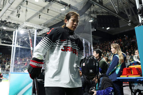 日本は、いきなり第1ピリオド(P)で2失点。浮田留衣が強烈なショットで1点を返したが、味方同士の交錯から痛い3点目を献上した。志賀紅音のビデオ判定ゴール「アカネの1ミリ」で1点差に詰めるのが精いっぱいだった。