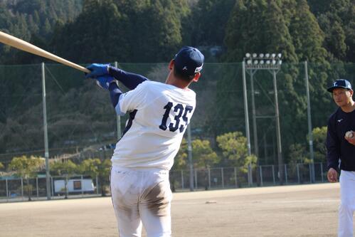 西武は今季、過去最多の101選手が在籍する。高知・春野キャンプでの3軍は早出練習などで対応するため、この日だけ山里のグラウンドを借りた。選手5人、スタッフ12人、ファン2人、記者1人。「練習場所も限られているので、こんなに広い球場でのびのびとやれて感謝です」。思いを表現するかのように、緑の山へ大飛球が伸びた。目撃者の1人は「グーグルマップで測ったら130・6メートルでした」。記者の測定でも131メートルと近似値だ。