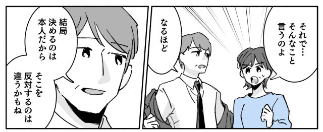 「結局決めるのはハルナだから、そこを反対するのは違うかもね。でも今は自分に都合のいい情報しか見えていないから、他人からの客観的な意見を聞くのも大切だと思うなぁ」と旦那は言います。