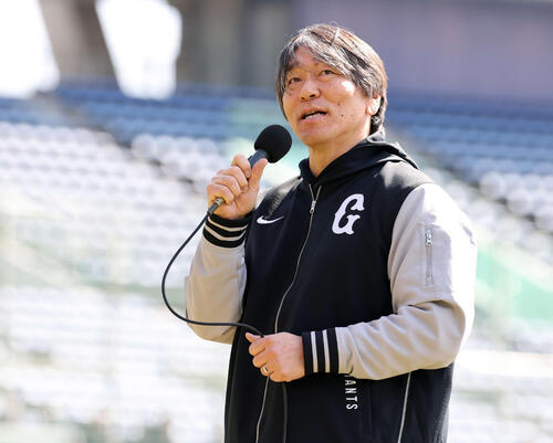 巨人OBでヤンキースGM付特別アドバイザーの松井秀喜氏(51)が紅白戦の試合前にファンにあいさつした。