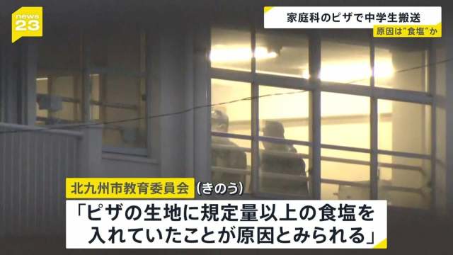 先月、福岡県北九州市の中学校で行われた家庭科の授業で、ピザを作って食べた3年の生徒8人が体調不良を訴え、そのうち6人が病院に搬送された問題です。