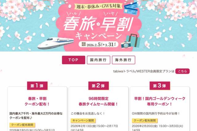 ½Õι¡¦Áá³ä¥¯¡¼¥Ý¥ó¤òÇÛÉÛ¤¹¤ë¡£¹ñÆâι¹Ô¤ÏºÇÂç7,000±ß¡¢³¤³°Î¹¹Ô¤ÏºÇÂç2Ëü±ß¤ò³ä¤ê°ú¤¯¡£ÇÛÉÛ´ü´Ö¤Ï2·î5Æü¤«¤é3·î31Æü¤Þ¤Ç¡¢½Ðȯ´ü´Ö¤Ï¹ñÆâι¹Ô¤¬2·î6Æü¤«¤é5·î30Æü¤Þ¤Ç¡¢³¤³°Î¹¹Ô¤¬2·î12Æü¤«¤é8·î20Æü¤Þ¤Ç¡£