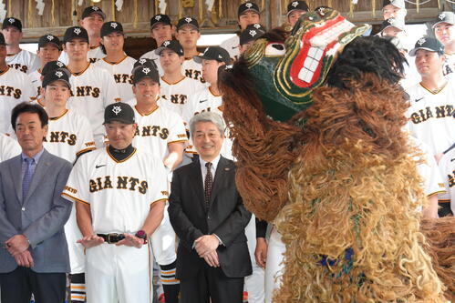 14日、沖縄・那覇での2次キャンプがスタートし、那覇市・知念覚市長(62)から特産品が手渡された。