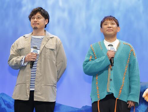 お笑いコンビ、アルコ&ピースが14日、都内で、「映画ドラえもん 新・のび太の海底鬼岩城」(矢嶋哲生監督、27日公開)の完成試写会に出席した。