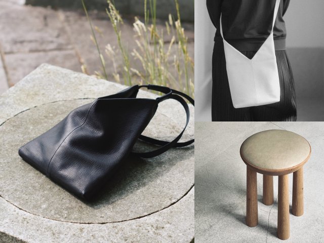 同ポップアップでは、「Place × Handwork」を掲げ、地域に根ざしたクラフトマンシップによって生まれたプロダクトを完成品としてではなく使い手の暮らしの中で育つものとして提案。会場では青森県産のレザーを使用したバッグ(5万5000円)や、五角形のウォレット(3万6300円)のほか、コラボアイテムとして、国産の漆で仕上げたレザーを用いたスツール(7万400円〜)とサイドテーブル(15万8400円〜)をラインナップしている。