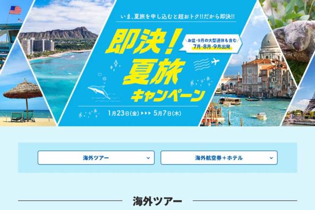 エイチ・アイ・エス(HIS)は、「即決!夏旅キャンペーン」を1月23日から5月7日まで開催する。