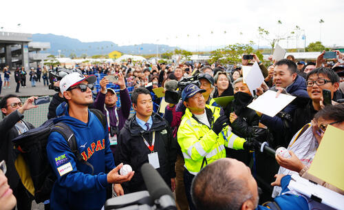温かみで言えば、ぎゅうぎゅう詰めに集まったファンにサインの神対応を見せる選手たちの姿も。口火を切ったのはダルビッシュ投手。カメラに収めようとする報道陣と場をいさめる警備員の中で、ひときわ長身の右腕が淡々とサインに応じていた。源田選手も続き、最後はチームで最も遅くまで残っていた牧選手がわずか数分ながらもサインに応じて帰路についた。
