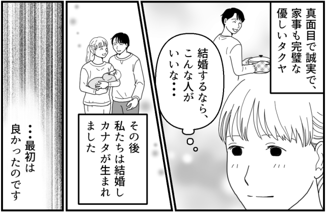 子育てよりも家事を優先するタクヤ。家事に関しては感謝はしているし、ありがたいということも伝えてはいます。ただ日に日に嫌悪感が募ってしまうのでした。だってタクヤは完璧な「家事」しか見ていないから……。