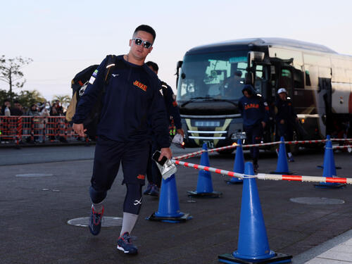 【侍ジャパン】早出組の牧秀悟、周東佑京、坂本誠志郎、高橋宏斗、北山亘基らが球場入り