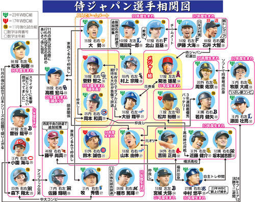 【イラスト】侍ジャパン選手相関図<侍ジャパン強化合宿>◇15日◇宮崎