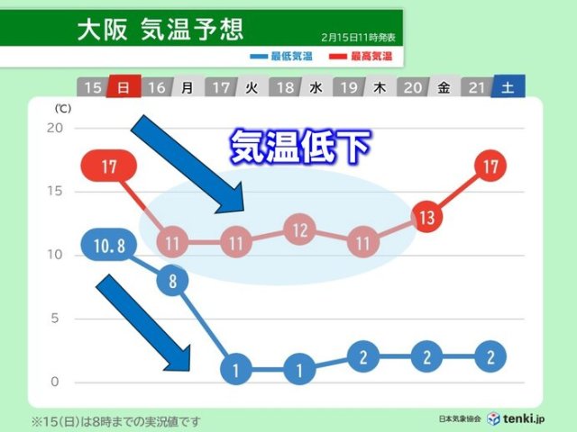 µ¤²¹¤¬µÞ¹ß²¼¤·¡¢Ãë´Ö¤Ï10¡îÁ°¸å¤Î½ê¤¬Â¿¤¯¤Ê¤ë¸«¹þ¤ß¤Ç¤¹¡£½ÕËÜÈÖ¤ÎÃȤ«¤µ¤«¤é°ìž¤·¤Æ¡¢2·î¤é¤·¤¤´¨¤µ¤ËÌá¤ë½ê¤¬Â¿¤¤¤Ç¤·¤ç¤¦¡£´¨ÃȺ¹¤ÇÂÎÄ´¤òÊø¤µ¤Ê¤¤¤è¤¦¡¢¤ªµ¤¤òÉÕ¤±¤¯¤À¤µ¤¤¡£