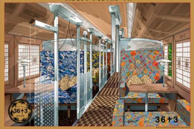 「36ぷらす3」は九州7県を5日間で巡る列車で、現在3号車に6室ある1〜2名用グリーン個室に加え、6号車に新たに10室のグリーン個室を設ける。現行の畳敷きリクライニングシートを改装し、床をフローリングとした通路とガラスの仕切りで車内を区切り、各個室に異なる意匠の座席を配置する。この改装に伴い、5月12日から秋まで運休する。