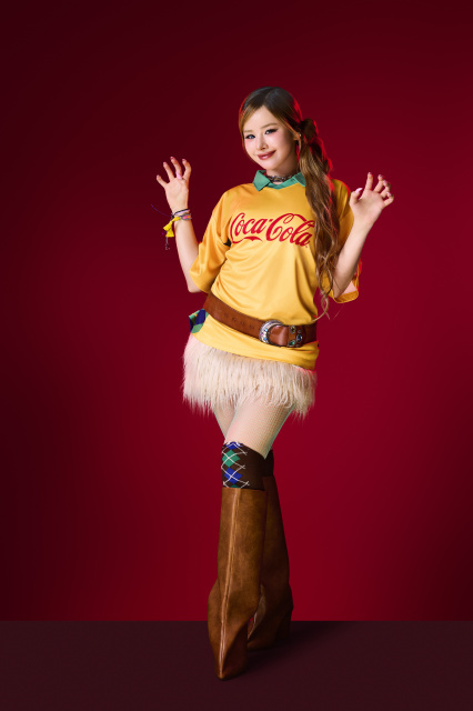 各メンバーは、「コーク限定ユニ」ファッションのコーディネートポイントも紹介している。「爽やかなホワイトベースのユニフォームにキラキラのボトムを合わせているのと、パールのネックレスもポイントです」(JURIN)、「青と赤の原色の組み合わせがとてもかわいいので、ボトムは迷彩柄とブーツでカッコよく締めてみました」(CHISA)、「オーバーサイズのユニフォームをミニマルに着こなしつつ、デザインが入ったデニムに中に着ているレギンス、チェーンのアクセサリーの組み合わせがお気に入りです」(HINATA)、「明るい黄色と緑のアクセントがスポーツ観戦にぴったりなユニフォーム。ボヘミアンなベルトとブーツと合わせると、より一層テンションが上がります」(HARVEY)。