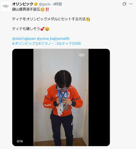 国際オリンピック委員会(IOC)は16日、日本語版公式X(旧ツイッター)を更新。ミラノ・コルティナ五輪で2大会連続の銀メダルを獲得した鍵山優真(22=オリエンタルバイオ/中京大)のほほえましい動画を公開した。