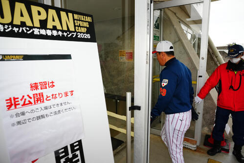 侍ジャパンが、宮崎での強化合宿第2クールの初日に非公開練習を実施し、「井端のカーテン」が敷かれた。