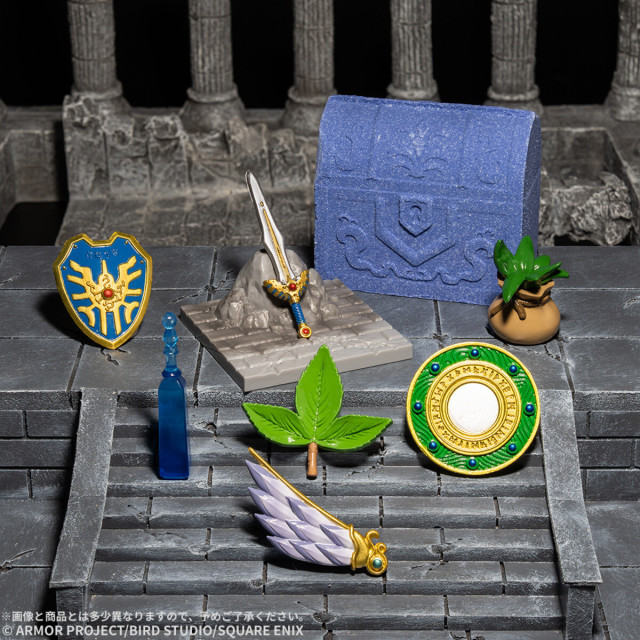 「ドラゴンクエスト」に登場する宝箱をイメージした、大ボリュームの入浴剤の中から出てくるマスコットは全7種類。入浴剤をお風呂に入れてシュワシュワ溶かすと、中から「ロトのつるぎ」「ロトのたて」「やくそう」「せいすい」「せかいじゅのは」「ラーのかがみ」「キメラのつばさ」のいずれかのマスコットが出現。出現したアイテムは、ダンジョンをイメージした付属の台座にセットしてディスプレイすることが可能な仕様となっている。