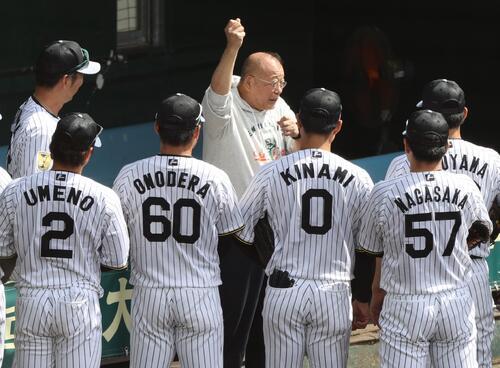 午後からのシート打撃が始まる前、三塁側ベンチ前に登場。藤川球児監督(45)が隣に立つ中、選手たちに激励の言葉をかけた。