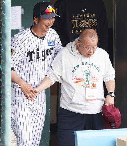 藤川阪神に突如、強力な味方がやってきた。午後のシート打撃が始まる直前だ。三塁側ベンチ前にテレビ撮影で訪れていた笑福亭鶴瓶が登場した。