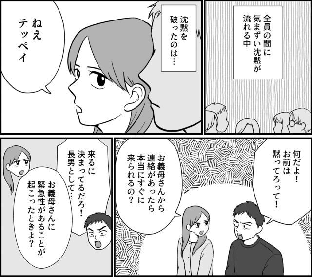 気まずい沈黙のなか、兄嫁が兄に「緊急時に2時間かけて来られるのか」と核心を突きました。