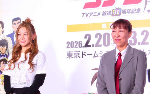 00年からタイアップが続き、17年には「同じアーティストにより歌われたアニメシリーズのテーマソング再多数」でギネス世界記録に認定。現在までに28曲が起用され、「大好きなコナンのテーマを担当させてもらえるだけでも奇跡。ギネスって…びっ倉木ですね」と笑いを誘った。