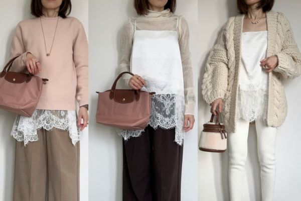 いかがでしたでしょうか。ここでレースキャミソールを購入するときのポイントを。 キャミソールタイプは紐の調節が可能なものがおすすめです。ニットの長さや重ね着の仕方で長さを調節できるのでより着回し力がアップしますよ。