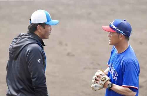 この日、飯山2軍監督が指揮を執る中日が名護で行う日本ハムとの2軍戦を前に、同球場内で元同僚の日本ハム稲葉篤紀2軍監督(53)と立ち話する姿が中継で紹介された。