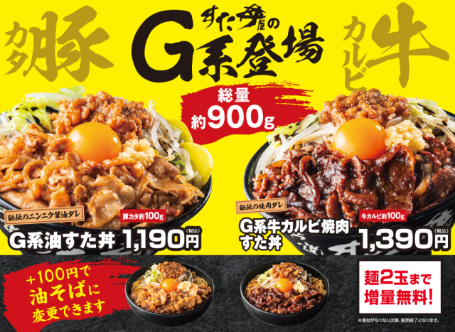総重量1kg超えの衝撃! 『伝説のすた丼屋』から肉×ニンニク×背脂が暴れる「G系」新メニュー4種が一斉登場